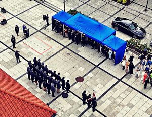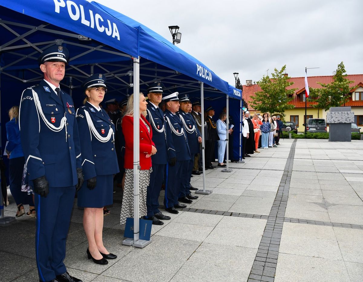 Zebranych na apelu przywitała Pani nadkomisarz Agnieszka Falandysz. Pani Komendant zwróciła się do policjantek i policjantów dziękując za trud włożony w codzienną służbę oraz podkreślając rolę kobiet, które od wieku z odwagą i determinacją pełnią służbę w policyjnym mundurze. Nie zabrakło także słów podziękowania dla samorządowców, przedstawicieli wymiaru sprawiedliwości oraz instytucji współpracującym z Policją, za wsparcie i współpracę na rzecz bezpieczeństwa mieszkańców powiatu.