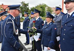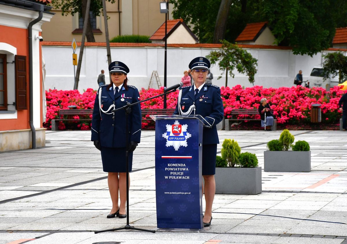 Kolejnym punktem uroczystości było wręczenie aktów mianowania na wyższe stopnie służbowe. Zastępca Komendanta Wojewódzkiego Policji w Lublinie inspektor Robert Michna oraz Komendant Powiatowy Policji w Puławach nadkomisarz Agnieszka Falandysz wręczyli policjantom akty mianowania na wyższe stopnie policyjne. W tym roku awanse na wyższy stopień służbowy otrzymało 50 policjantów, w tym 11 przed terminem.