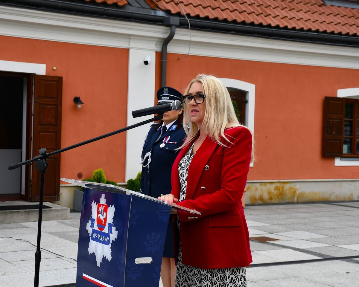 Słowa uznania oraz serdeczne życzenia dla puławskich funkcjonariuszy przekazała również Starosta Puławski Pani Teresa Gutowska. Pani Starosta odniosła się również do 100. rocznicy służby kobiet w Policji, dziękując wszystkim Policjantkom – zarówno tym w służbie, jak i emerytowanym – za ich wkład w budowanie bezpiecznej codzienności, za zaangażowanie, odwagę i odpowiedzialność, jaką codziennie niosą na swoich barkach.