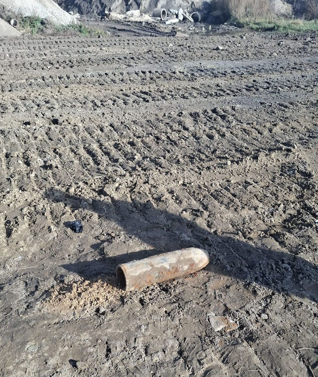 Pocisk artyleryjski wykopany podczas budowy drogi