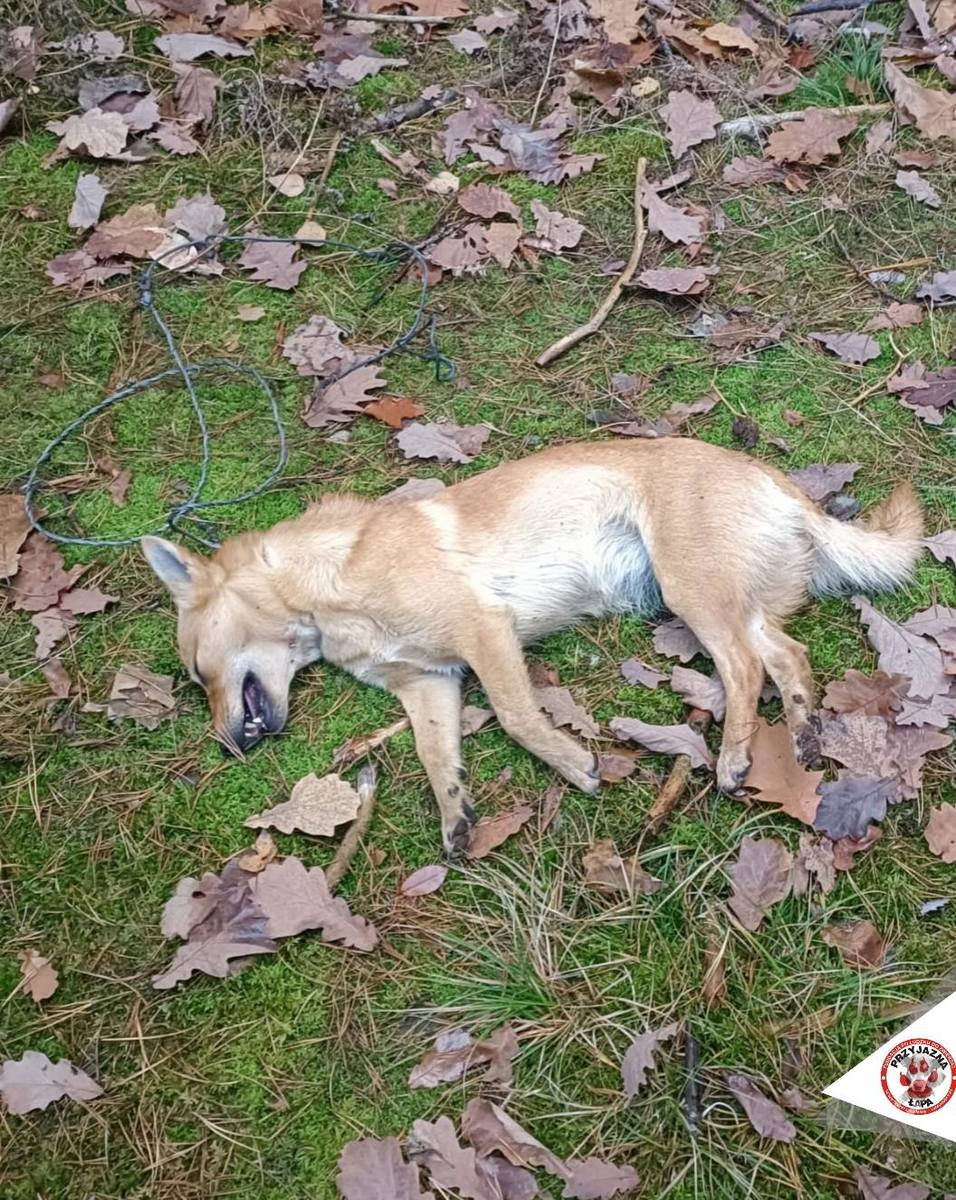Zgłoszenie o znalezionych psach wpłynęło do KPP w Puławach wczoraj (06.11) około godziny 13:00 od osób, które przyjechały do lasu w Trzciankach na grzyby. Dwa psy, sporej wielkości kundelki miały na szyjach pętle samozaciskowe ze stalowymi linkami zamocowanymi do drzew. Każdy ruch zwierząt powodował, że pętle się zaciskały. Jednego z psów, mimo że był agresywny udało się uwolnić, po czym natychmiast uciekł, drugi natomiast był już martwy.