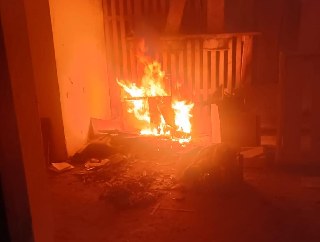 Budynek był zamknięty, miał karty w oknach na dolnej kondygnacji. Dzielnicowi powiadomili dyspozytora numeru alarmowego 112 o pożarze, prosząc o skierowanie na miejsce straży pożarnej, po czym sami przystąpili do ratowania budynku przed spłonięciem. Siłowo usunęli płytę zabezpieczającą drzwi i dostali się do wnętrza. Okazało się, że wewnątrz pali się ognisko, którego płomienie sięgały stropu wykonanego z desek i drewnianych bali. Wokół było mnóstwo drewnianych mebli i sprzętów stanowiących wyposażenie młyna.