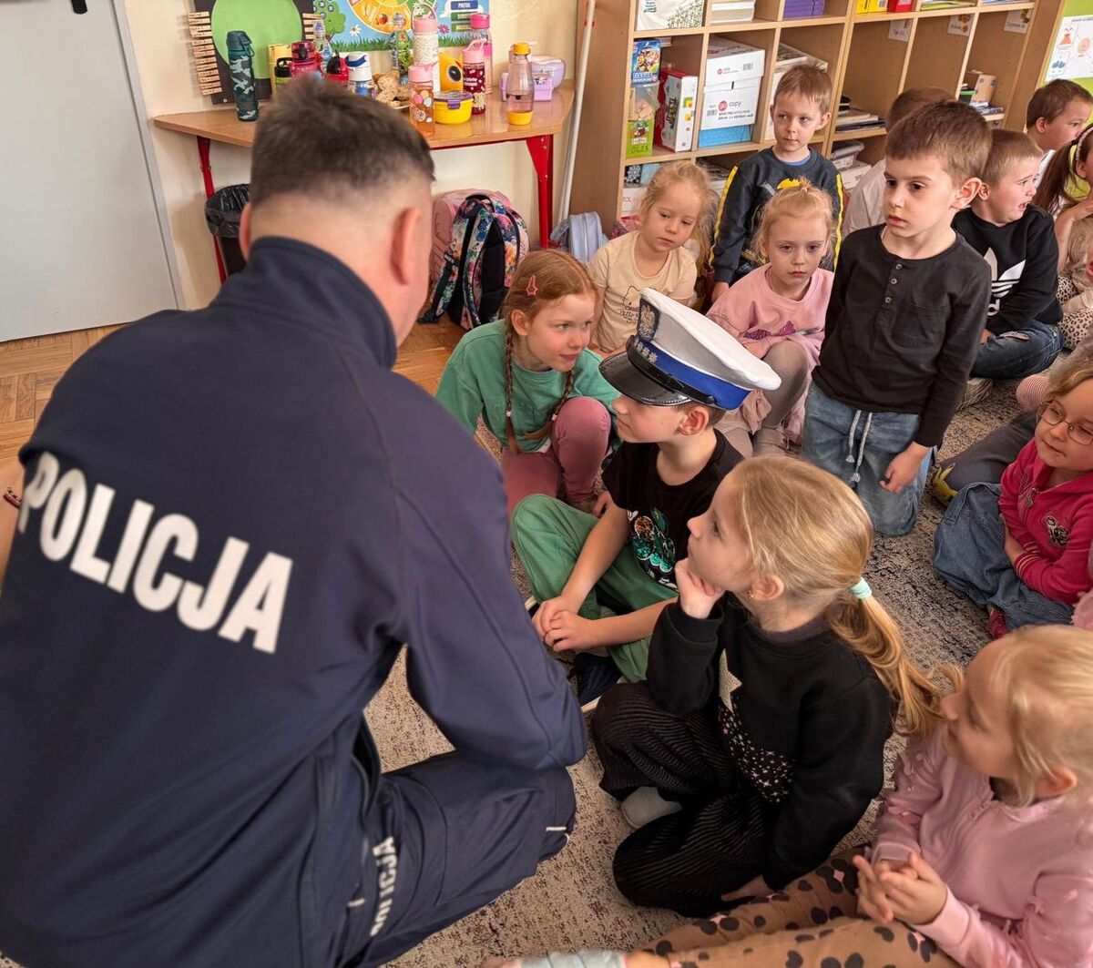 Podczas zajęć funkcjonariuszki rozmawiały z dziećmi o podstawowych zasadach bezpiecznego zachowania w drodze do szkoły i w domu. Najmłodsi dowiedzieli się również, jak reagować w sytuacjach zagrożenia oraz w jaki sposób wezwać pomoc, korzystając z numerów alarmowych. Policjantki przypomniały także o zasadach bezpiecznego kontaktu z osobami nieznajomymi, a policjant przekazał dzieciom szereg ważnych informacji o tym, jak bezpiecznie poruszać się po drogach, na co zwracać uwagę przemieszczając się po mieście i żeby pamiętać o odblaskach, nie tylko poza obszarem zabudowanym. W ramach działań ROADPOL policjant przekazał również informacje o tym, jak ważne jest korzystanie z pasów bezpieczeństwa i prawidłowe przewożenie dzieci w pojeździe w fotelikach ochronnych lub innych urządzeniach podnoszących bezpieczeństwo najmłodszych.