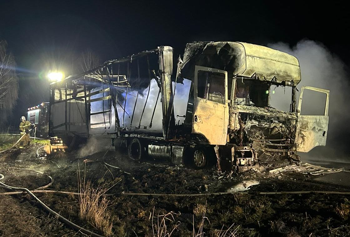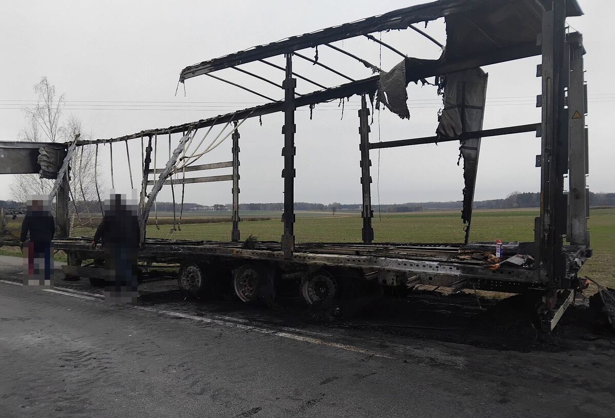 Z ustaleń policjantów wynika, że 39-letni kierowca ciężarowej Scanii, mieszkaniec powiatu łukowskiego, gdy zauważył, że spod maski pojazdu wydobywa się dym, a do kabiny zaczął docierać zapach spalenizny, natychmiast zatrzymał pojazd i opuścił kabinę. Z uwagi na to, że nie zdążył zabrać ze sobą telefonu, pobiegł do najbliższych zabudowań i tam poprosił o pomoc w wezwaniu na miejsce służb. Gdy wrócił do samochodu, ten już całkowicie stał w płomieniach. Strażacy, którzy przyjechali na miejsce, ugasili pożar. Na szczęście nikt nie ucierpiał w wyniku pożaru. Do czasu uprzątnięcia zestawu, ruchem na drodze kierowali policjanci z komisariatu w Kurowie.